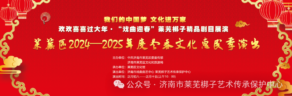 为满足人民群众日益增长的精神文化需求,不断丰富人民群众的节日文化生活,全力营造喜庆、祥和、团结、欢乐、健康的节日氛围,由中共济南市莱芜区委宣传部、莱芜区文化和旅游局主办,莱芜区文化馆承办,济南市戏曲曲艺中心莱芜梆子艺术传承保护中心演出的“我们的中国梦 文化进万家”莱芜区2024——2025年度冬春文化惠民季演出活动于2月12日,随着莱芜梆子传统剧目《红鬃烈马》(第二本)结尾曲的奏响圆满落下帷幕。